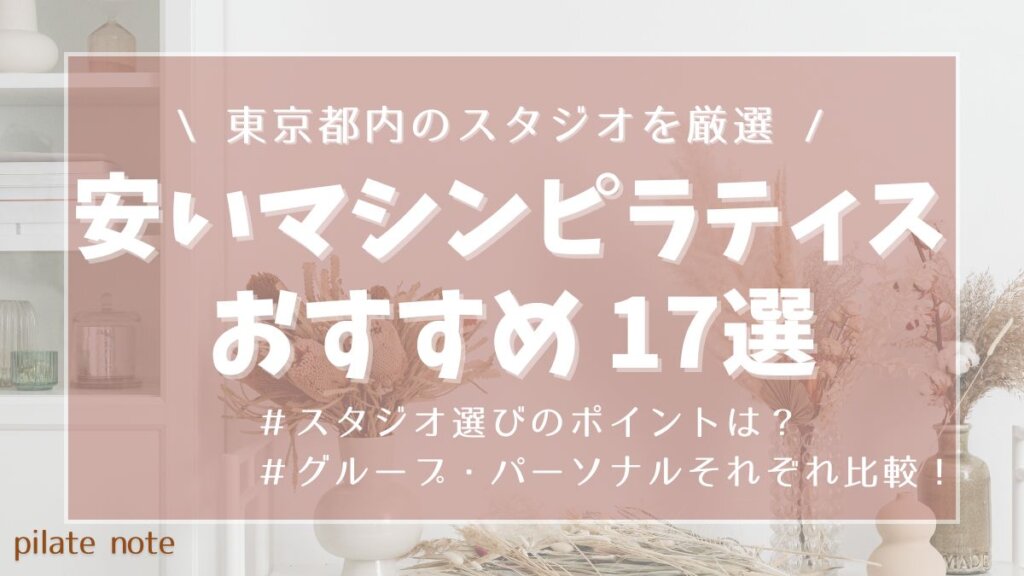 東京都内でマシンピラティスを始めるならどこがいい? できるだけ費用を抑えてマシンピラティスを始めたい パーソナルでも低価格で通えるスタジオが知りたい! 今回はそんな人向けに、東京都内で比較的安く通えるマシンピラティススタジオを17社まとめてみ...