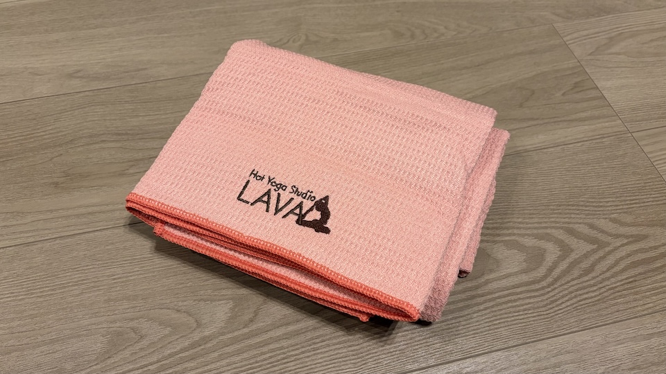 マットの上に敷くヨガラグは必須なので、初回レッスン前に必ず用意してください。LAVAのラグが滑り止めがしっかりついていて、全然ズレないのでおすすめです。