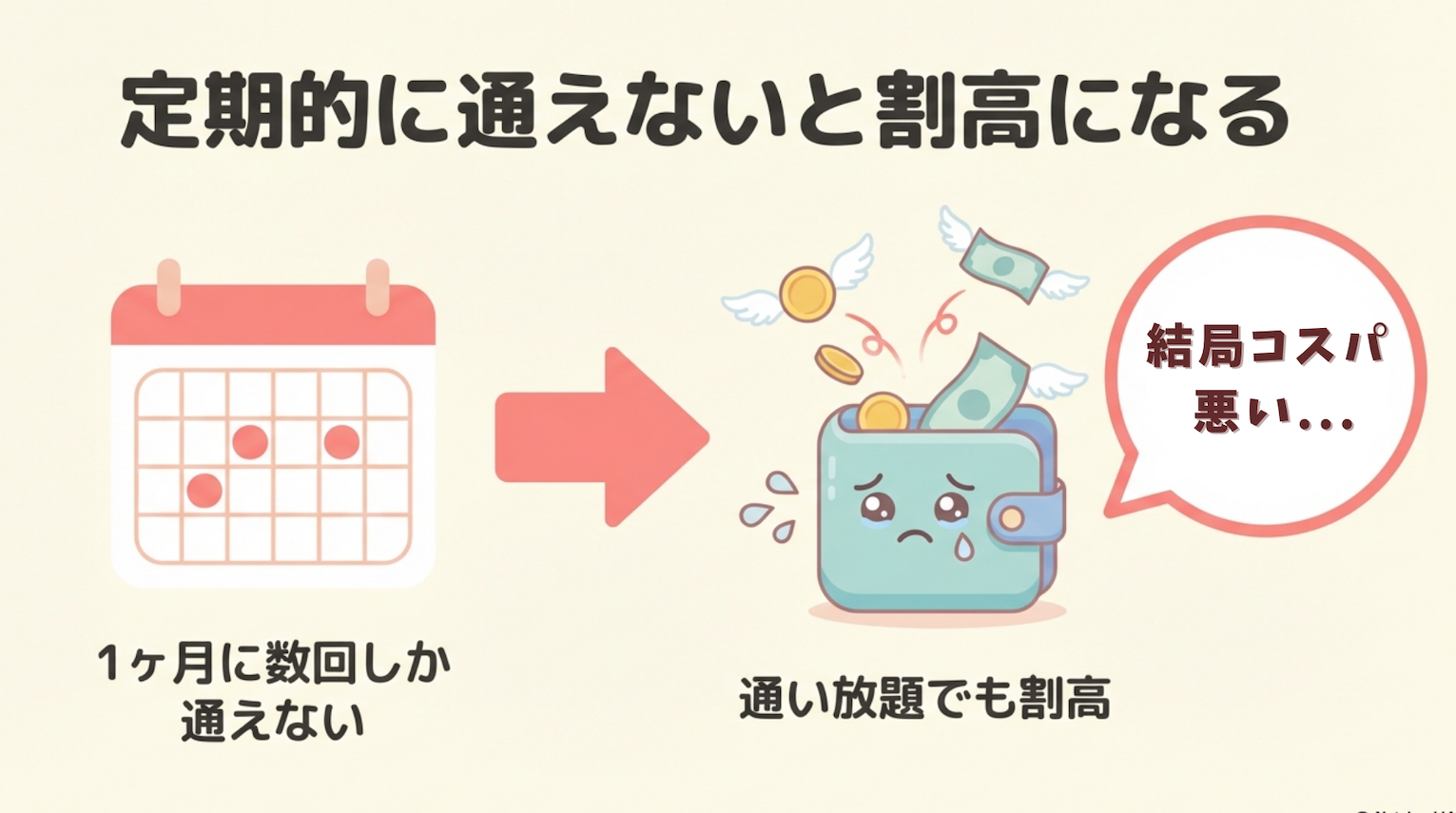 1ヶ月に数回しか通えない場合、通い放題プランは割高になってしまいます。