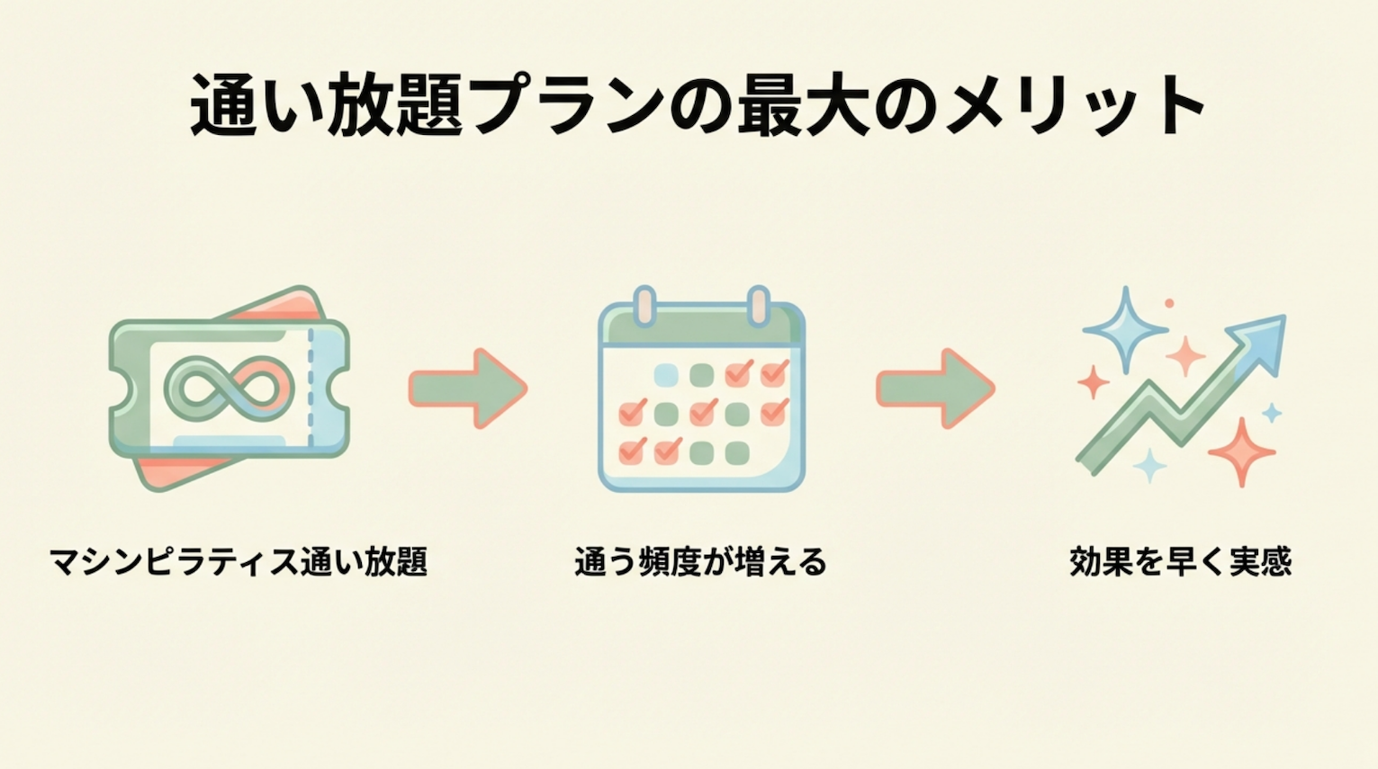 通い放題プランでピラティスに通うメリットは、以下の通りです。