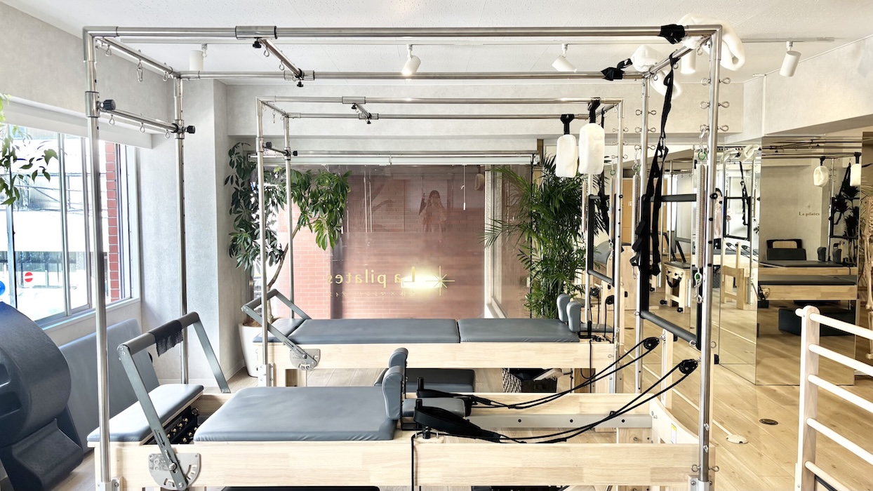 La pilates(ラピラティス)渋谷店は、マシンピラティスと整体が同時に受けられるパーソナルレッスン専門店。木目調に緑が入った落ち着いた雰囲気のスタジオです。