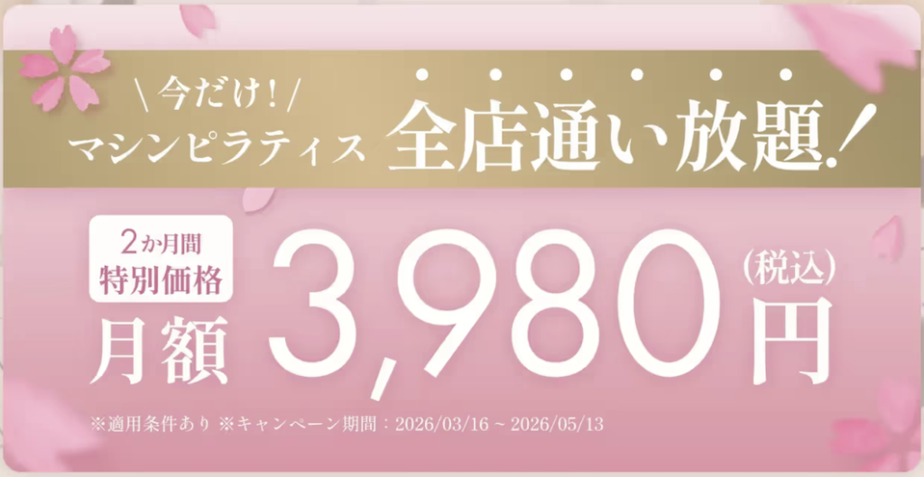 theSILKでは、2026/5/13まで”春のスタートダッシュキャンペーン”が実施中!全店通い放題が月額¥3,980の破格で通えるので、以下より詳細をチェックしてみてください。
