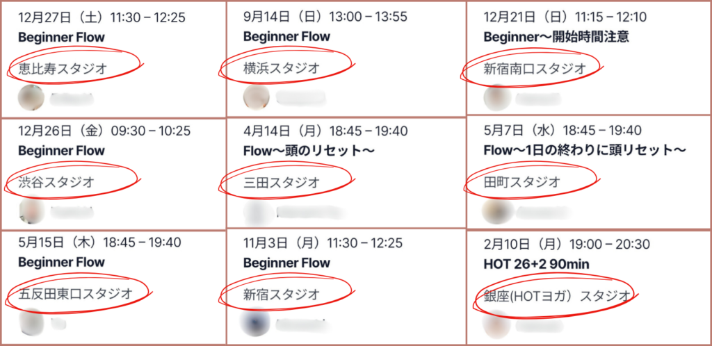 ↓これまで9スタジオ以上でレッスンを受けました!